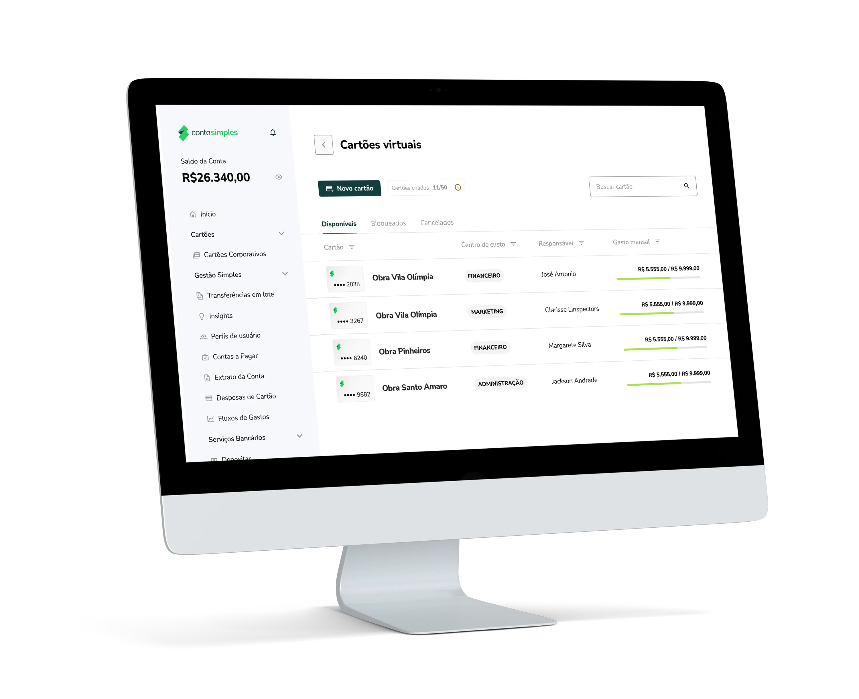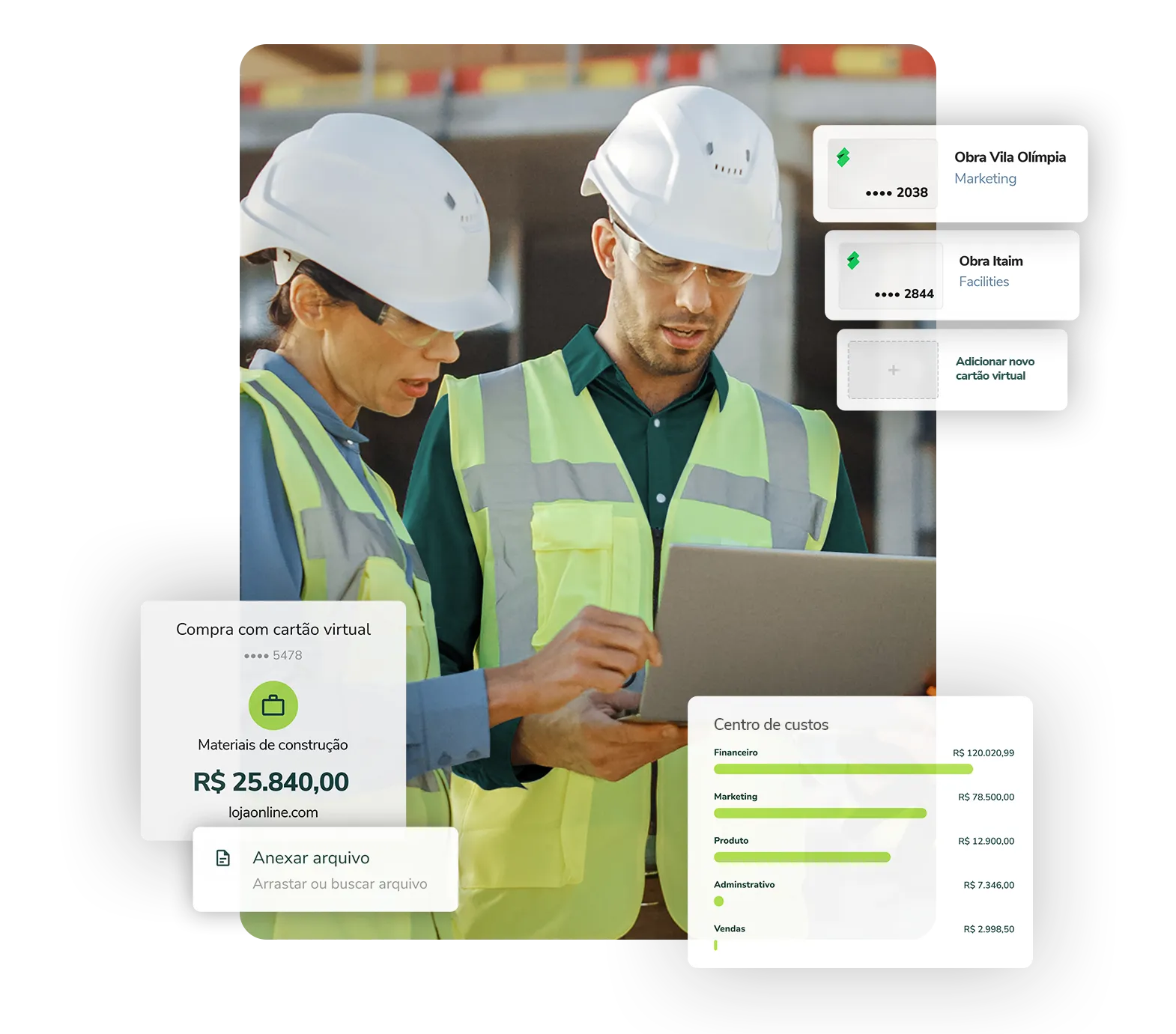 Emita cartões sem burocracia, controle as despesas de obras em um só lugar e leve mais agilidade para as compras do dia a dia.